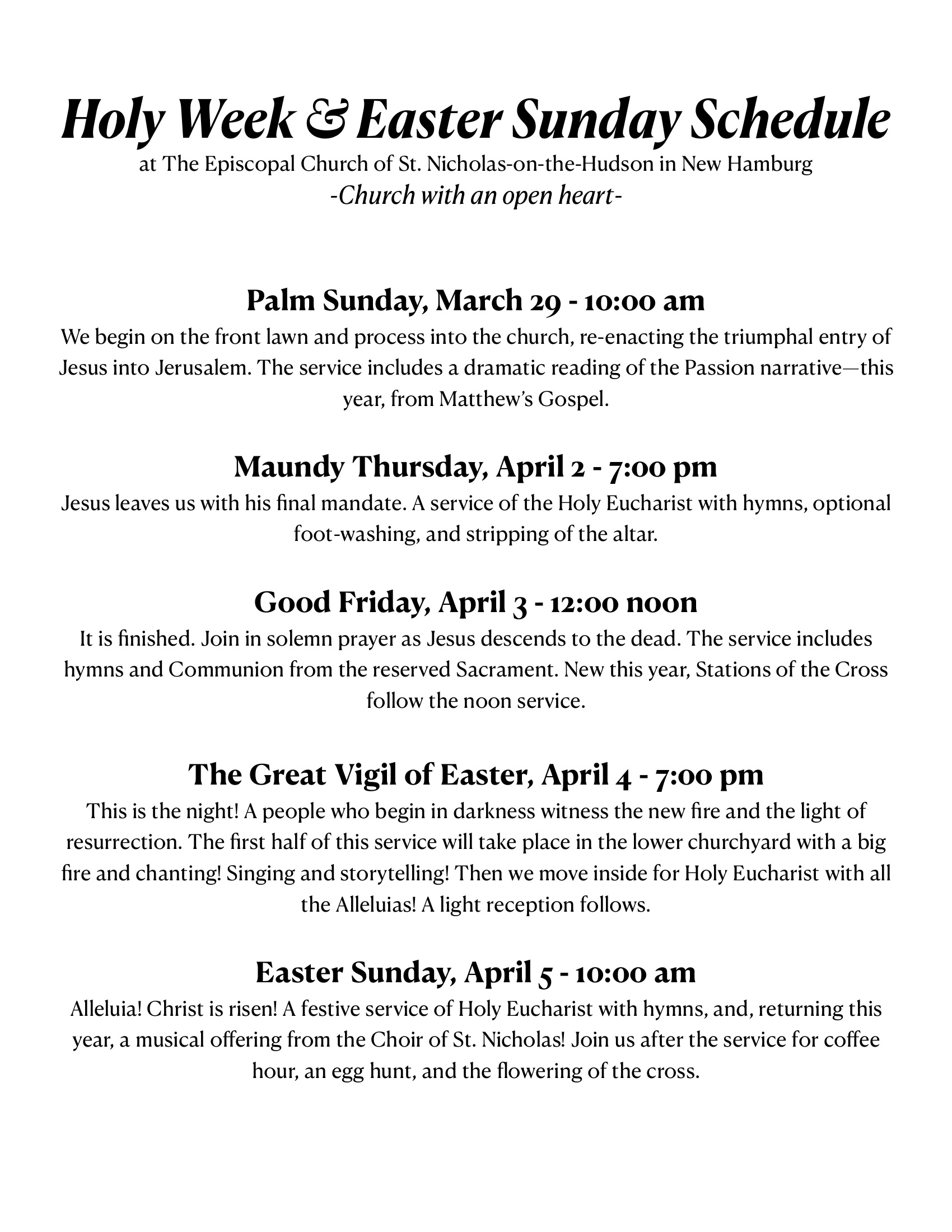 We are an inclusive Episcopal Church on the Hudson River in New Hamburg, NY.